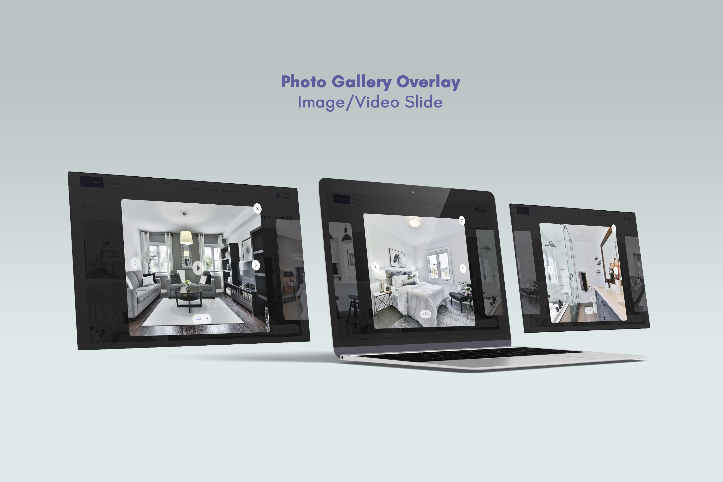 Incorporating a photo overlay that provides users with access to more property photos, coupled with a hover interaction on gallery photos, signaling to users that a photo is clickable; significantly enhances the user experience by reducing user uncertainty and making the interface more intuitive, while providing a more immersive and interactive way to view property photos.