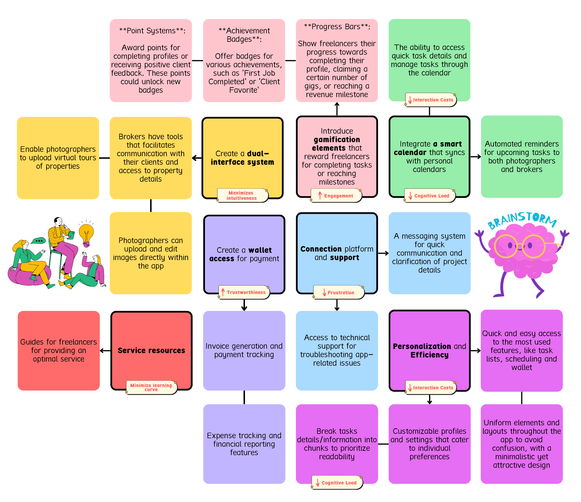 Notes from a brainstorming session to inform the design