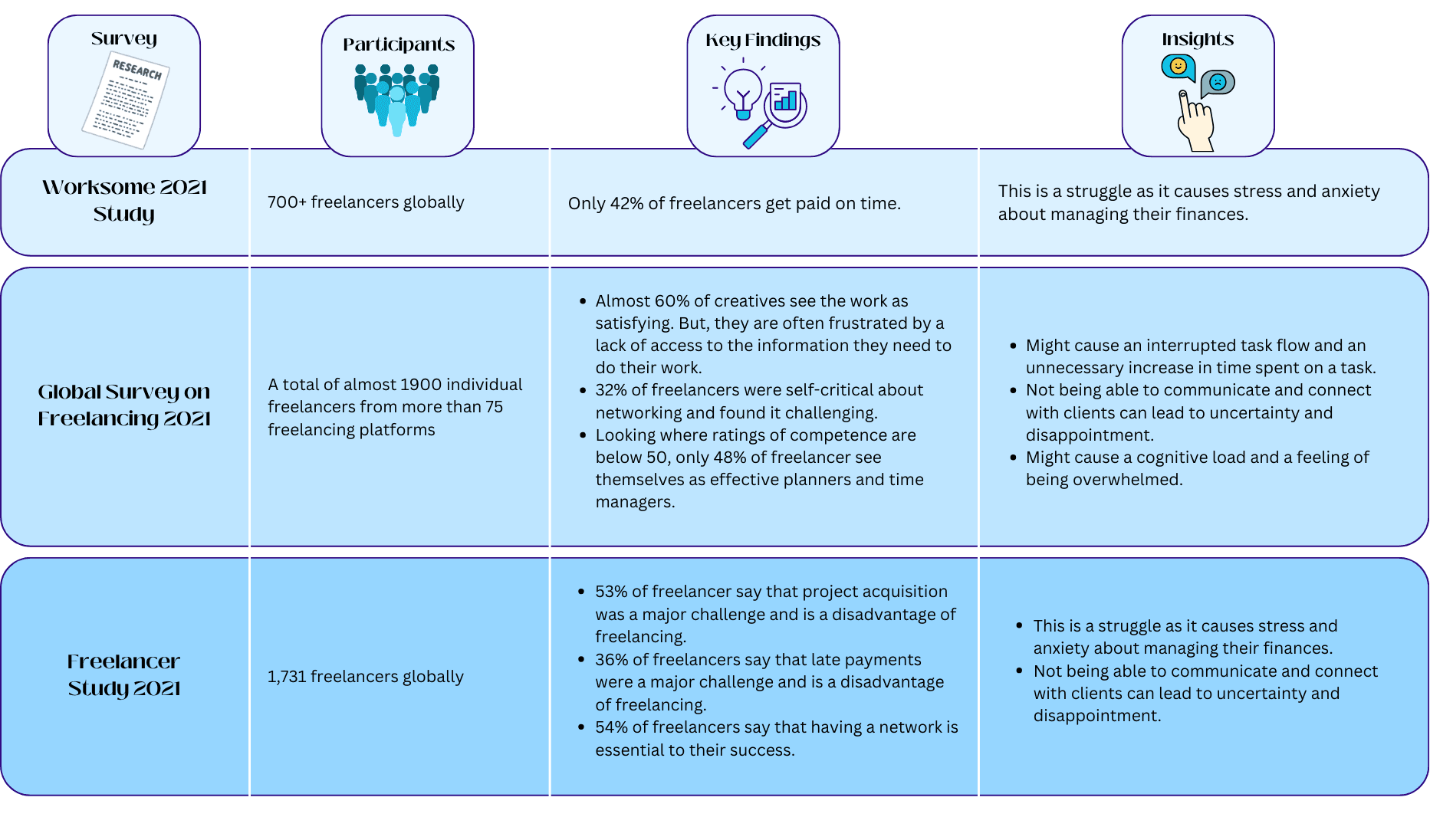 Furthermore, freelancers are struggling with 4 main issues: