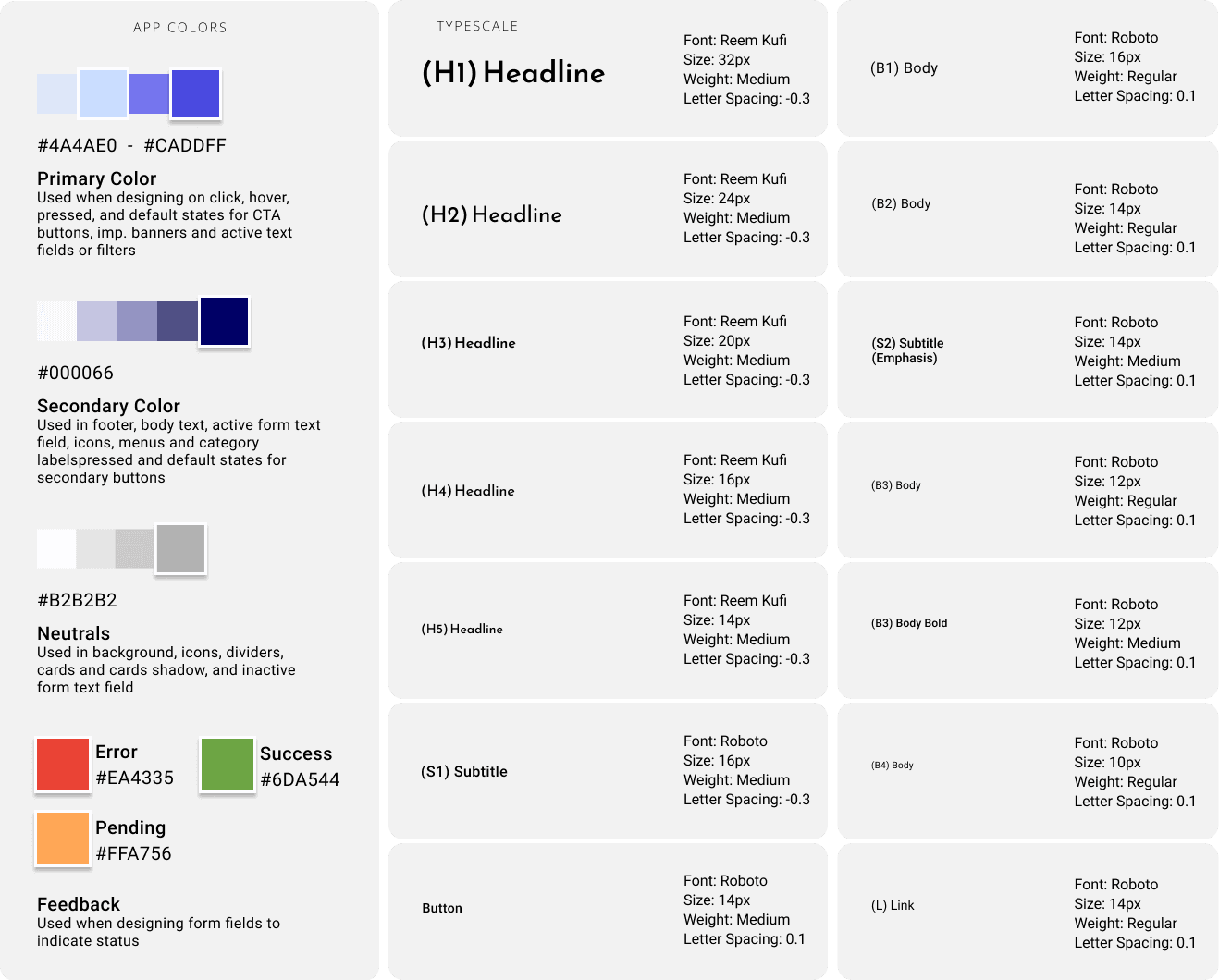 Roboto Font: Clean style with sharp lines. Used for body paragraphs and subheadings for its clarity and readability.