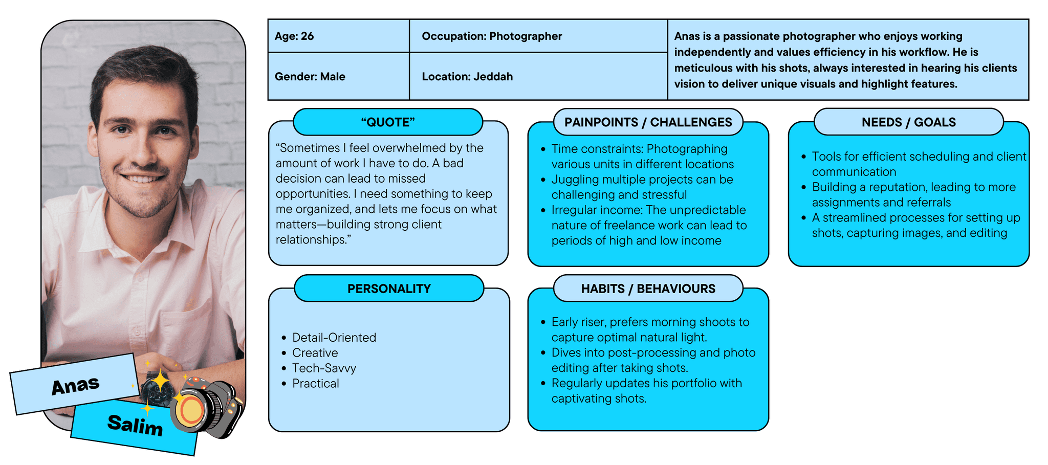 User Persona for Photographer freelancers